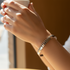 This stainless steel bangle is great for layering and has unique silver beading around the top edge that gives it a special look.