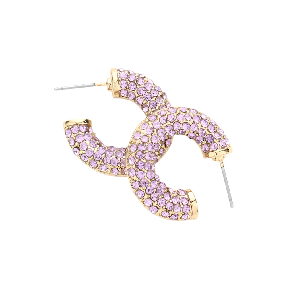 These embellished stone hoop earrings were designed in New York and are just pure fun! The soft lavender color is just beautiful to compliment your new Summer dress! The rhinestones are vibrant for maximum sparkle. A total glam statement for parties & nights out!