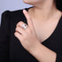 Such a bold statement ring! Perfect for your next night out with its elegant band, chic clear pave and emerald green crystals, and trendy style.