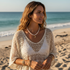 Such a unique and boho inspired pearl necklace with a gold hammered moon pendant! Worn as a shorter necklace.