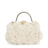 Be the belle of your next night out with this exquisite satin rosette evening bag adorned with a crystal handle and closure clasp. Everyone will be asking where you got this gem!