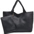 The perfect tote for all of your needs. Crafted with luxurious and lightweight vegan leather, this bag features a woven all-over and a magnetic closure to keep your belongings safe and secure. The inside is unlined and comes complete with an added zipper pouch for some extra storage that can also be used as a hanging accessory. With a handle drop measuring 10”, you will never lose your grip while on the go. Do yourself a favor and get your hands on the effortlessly chic Solana today!